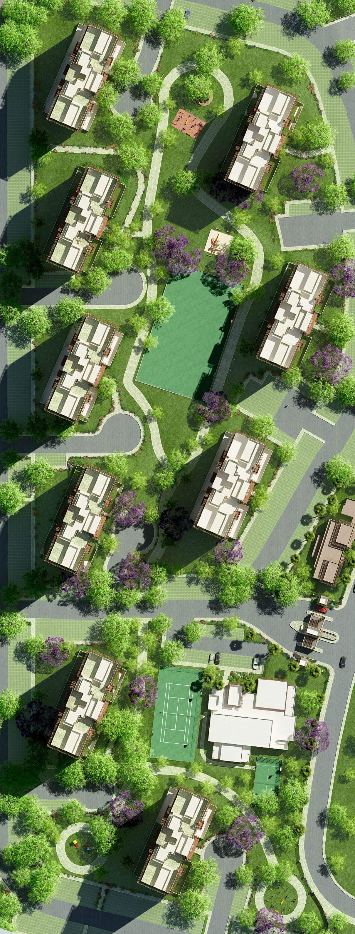 El Plan Maestro de Queralt fue diseñado para que cada departamento, goce de privacía y amplitud donde la orientación ofrece iluminación natural ideal en todas las torres. Estas fueron distribuidas de tal forma que en todos los casos se rodean de áreas verdes y jardines, creando así agradables paisajes visuales.